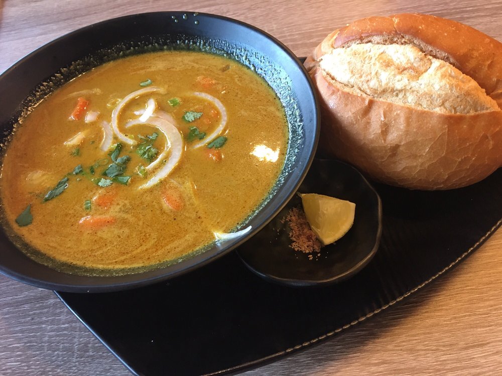 Located in a crowded trendy shopping center in Garden Grove, Mama Tieu's serves up classic Vietnamese eats in a modern open space environment. Maybe it was an off day. Maybe the A.C. wasn't performing optimally on this warm Summer day. I walked past the kitchen and the heat felt like an inferno. Maybe it was the wait or confusion when they found my order was packed to go when I was actually dining in. I was still eager to try their Ragu bread bowl and Cari Ga (chicken curry) bread bowl. Unfortumately, I found both to be heavey on the sweet side. I feel both dishes should be savory and lean towards the salty spectrum. While I may be back for the other dishes, I will refrain from their curries and bread bowls. Hopefully their other dishes will be their homerun.